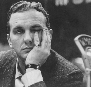 The February 9, 1959 issue of LIFE magazine published a photo feature on WMGM New York deejay Peter Tripp. He had just completed a 201 hour marathon on behalf of the March of Dimes. At right, he is joined by his wife 199 hours and 50 minutes into the epic effort. Tripp was attended throughout by medical professionals, who cautioned others DJs not to try such stunts because of the dangers. Tripp experienced hallucinations and symptoms of mental illness as the marathon wore on, picking imaginary bugs from his clothing and looking for cash in an empty drawer. |